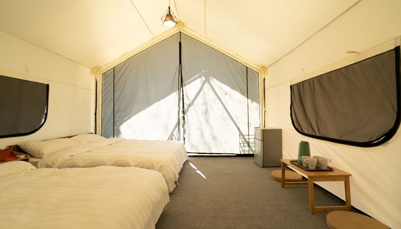 狩獵帳內獨立浴室浴室熱水供應時間開放至晚間23:00整,為響應環保愛護地球配合政府政策,入住時需自備牙膏/刷、毛巾。(如忘記攜帶,可至營本部購買)